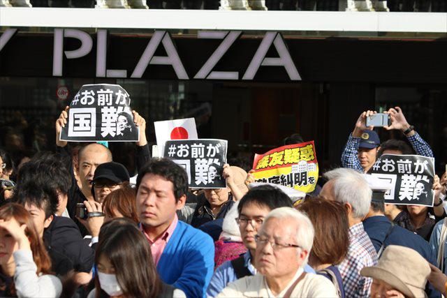 安倍総理の演説中には、前日の国分寺駅と同じく、聴衆から「#お前が国難」などのプラカードが掲げられ、「安倍やめろ!」コールや「モリカケはどうした!」などの野次が飛んだ。