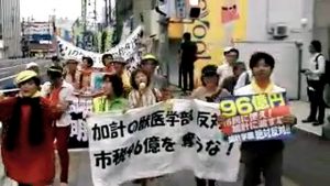 9月23日、「今治加計獣医学部問題を考える会」による市民対話集会が開かれ、それに先立ち、今治市の獣医学部建設用地と市役所までのデモ行進がおこなわれました。