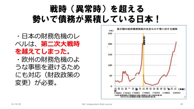 しかもその時に当然、金利が上昇するわけですから、国債の利払費が増加していきます。25兆円未満の水準だったのが、2025年度には40兆円を超えるわけです」