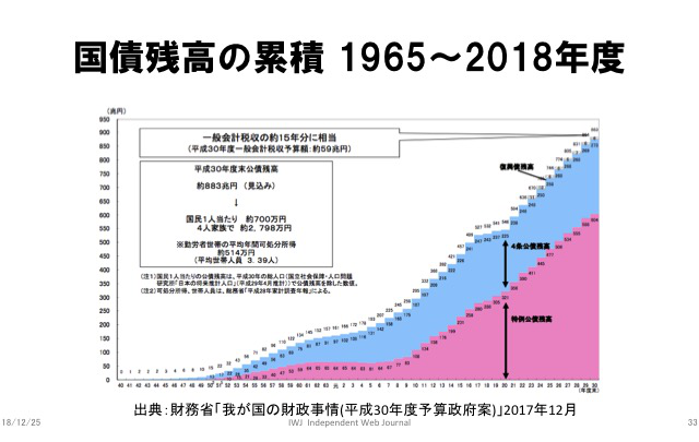 言いたいのは、金利上昇というのは、それくらいものすごいことだということです。爆弾を抱えているわけですよ。しかもこの国債利払費は1円たりとも切ってはいけない。国債とは最も信用のある金融商品でしょう。『ちょっと利払を遅く…』と言った瞬間に、ウォール・ストリート・ジャーナルが書き立てますよ。『ジャパン!』『デフォルト!』。ブルームバーグも『ジャパン!』『デフォルト!』(笑)。