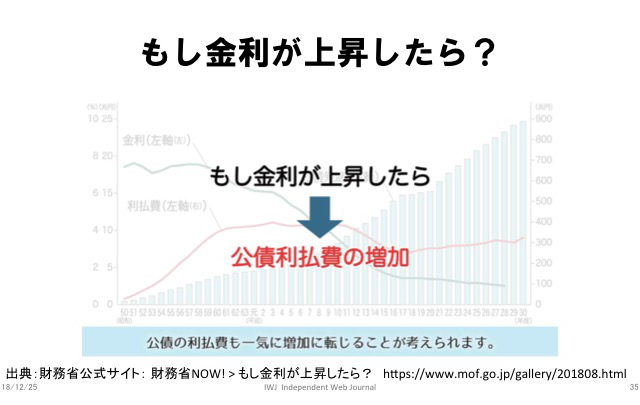 『もし金利が上昇したら、公債利払費が増加する。公債の利払費も一気に増加に転じることが考えられます』。これで終わりなんですよ」