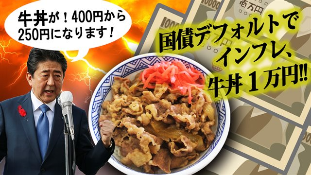 田代「円安に向かった時に、為替レートは一気に上がります。自民党は、『メリットは牛丼だ。安い外国の米と安いオーストラリア産ビーフで作れば、400円だった牛丼を300円、250円で食えるんだ。いいじゃないか』と言っていたんですけれども(笑)。これがいきなり1万円などになっちゃうわけです」