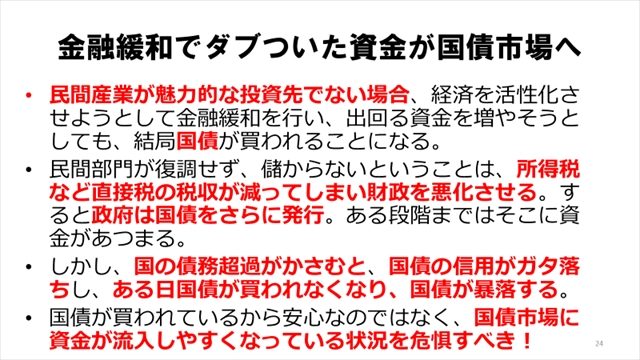 これからものすごく通貨がダブつくことは想像つきますから、ある種のバブルが生まれるわけですけれども、後始末はどうするんでしょうか。マーケットに対して危険なアナウンスをしているということですね」