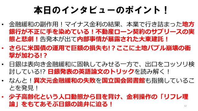岩上「そうですね。そういう地方が非常に疲弊しているという話を、ただ単に社会学的に、もしくはルポルタージュ的に語るというのだけではなくて、それが地方銀行を疲弊させているということ、その原因は中央の金融政策のまずさにあるということまでを話してほしいです。