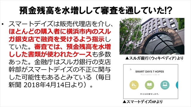 5月22日には、「スルガ銀行・スマートデイズ被害弁護団」から刑事告発を受けている。