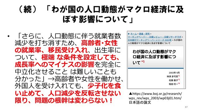 田代「ただ、もうこんな人口減少社会だと、そんなことができるほどのパワーもあるだろうかって感じですよ。戦争を起こすパワーもないし、ハイパーインフレだって、活発な経済活動があるからこそ起きるわけですから、ゾンビ化してしまっている今は…」