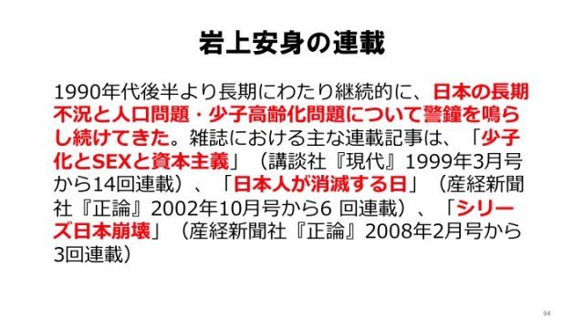 岩上「でも、そんなもの完全に夢ですよ。あのときの条件、人口動態の条件がないんだもの」