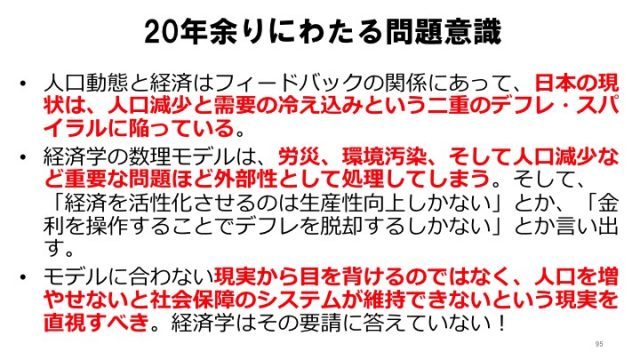 ここまで来たら、選択肢はもはや二つ。少子化をとにかく止めて人口増加を起こすか、人口が減少するかたちにしてもなお持続可能な社会に作り替えるか。どちらかを選択しなければならないのに、どちらも選択しない」
