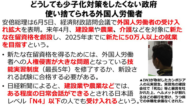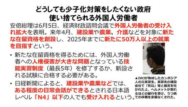 IWJもこの問題を取り上げ、実習生のひとりに直接取材をした。日本の産業界が自分たちの利益を確保するためにいかに労働者の人権を無視し、死にまで追いやるものか、その実態を証言してもらった。そちらもぜひご参照いただきたい。