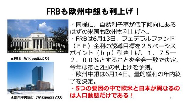 こんなにいろんな問題が世界中のあちこちにある。だからアメリカもヨーロッパ中央銀行も、今のうちに取りあえず金利を少しでも上げておいて、引き下げ余地を残しておきたいわけです。でも、日本は引き下げ余地のないまま、その危機に直面しなければならなくなる。この方がよっぽど怖いですよね」