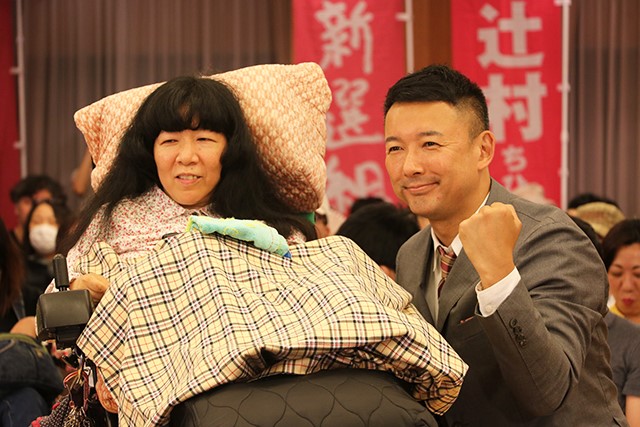 ▲木村英子参議院議員と山本太郎代表(IWJ撮影)