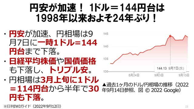 こんな話題なんですけど、これを、ちょっと入り口として。円安が、いろんなかたちで影響出てるねと。で、ここからは、ちょっと数字の話になってくるんで、ぜひ、ご説明いただきたいなと思うんですけど」