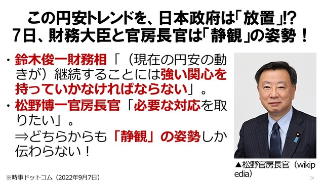 岩上「ということで、『98年以来となる24年ぶりの円安水準!』ということですよね。だから、円安も少しはいいだろうという話、製造業、輸出企業が儲かるから、結果、巡り巡って日本にとってはプラスなんだ、そういうようなことから始まっていったのに、止まらなくなってきた。