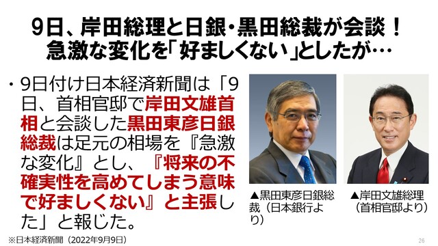 岩上「それで、『円が急落してもやめられない日銀金利抑制策』っていう話なんですけれども、これ、朝日新聞の記事の中にですね、『円安でもやめられない 異例の金利抑制策の本当の理由』っていうのがあったんで、ちょっと取ってきたんですが。『外国為替市場では、金利が高いドルを買い、金利が低い円を売る動きが強まり、円安が加速している』。これは今、ずっとお話しいただいてきたことの、まとめみたいな感じですね」