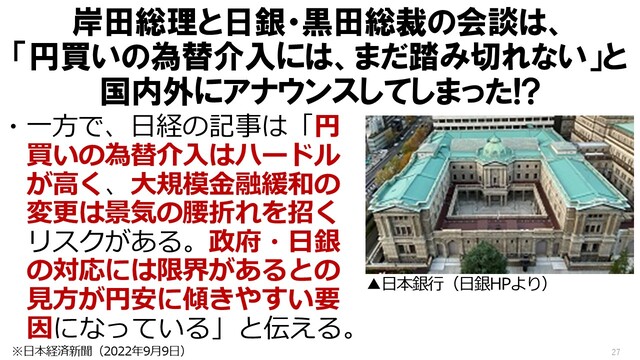 難しいマクロ経済学の話って、一般の市民の方、あるいは庶民の方、しないわけですよ。だけれども、さすがに経済の話でも、ここまで円が安くなったと、円安の話ってなると、皆さん、話し始めるし、問題は何なのか、問題の所在にも気が付いてると。