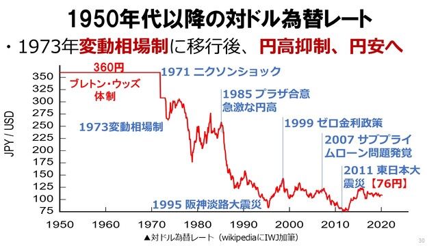 ▲1950年代以降の対ドル為替レート