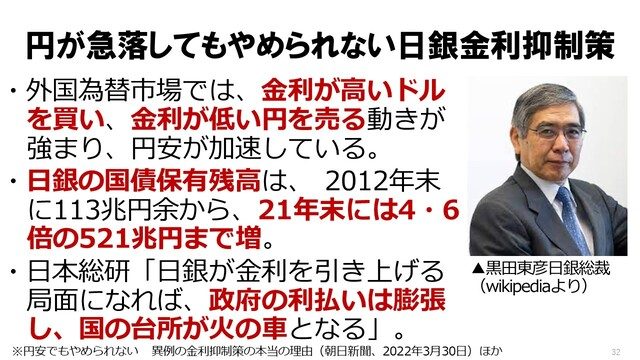 岩上「で、『日銀の国債保有残高は、 2012年末に113兆円余から、21年末には4.6倍の521兆円まで増』。これ、国債増発してきたからですよね」
