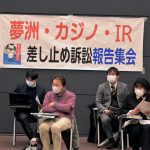 (1)各訴訟団の原告代理人から法廷での口頭弁論についての解説があった。夢洲カジノを止める会の原告団からは意見陳述について畠田弁護士が解説を行った。