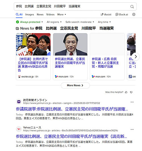 【写真】開票から2日たった後も、検索に「川田龍平氏が当選確実」のデジタルタトゥーが残る