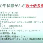 3題目ではNPO法人「3.11甲状腺がん子ども基金」の崎山比早子氏が、県内外の手術症例を比較した結果、県民健康調査甲状腺検査の有効性と、過剰診断に否定的であることを報告した。