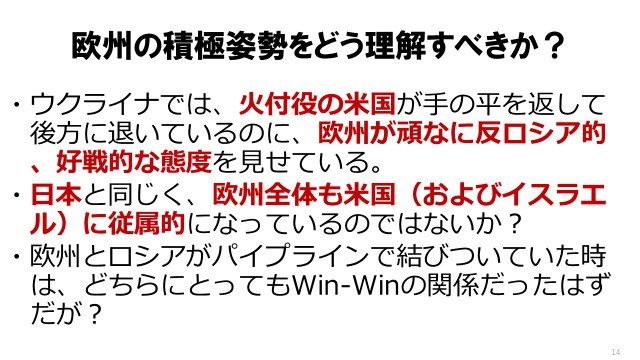 「ノルドストリーム・パイプラインを、米国やノルウェーに破壊されたにもかかわらず、なぜ、ドイツをはじめとするヨーロッパ人は、自分達が米英の罠にはめられていることを直視しないのだろうか?」という岩上安身の疑問について、ロッタ氏は、次のように述べた。