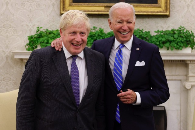 ▲ジョー・バイデン米大統領、ボリス・ジョンソン英首相とホワイトハウスで。(出典:Wikipediaより、2021年9月21日、英国首相官邸から)