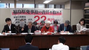集会では、ジャーナリストの後藤秀典氏が、「裁判所・東電・巨大事務所のつながりと原発裁判」と題した講演で、原発事故裁判での東電経営陣や国に対する免責判決の背景に存在する、法曹界と国、電力会社の癒着を指摘した。